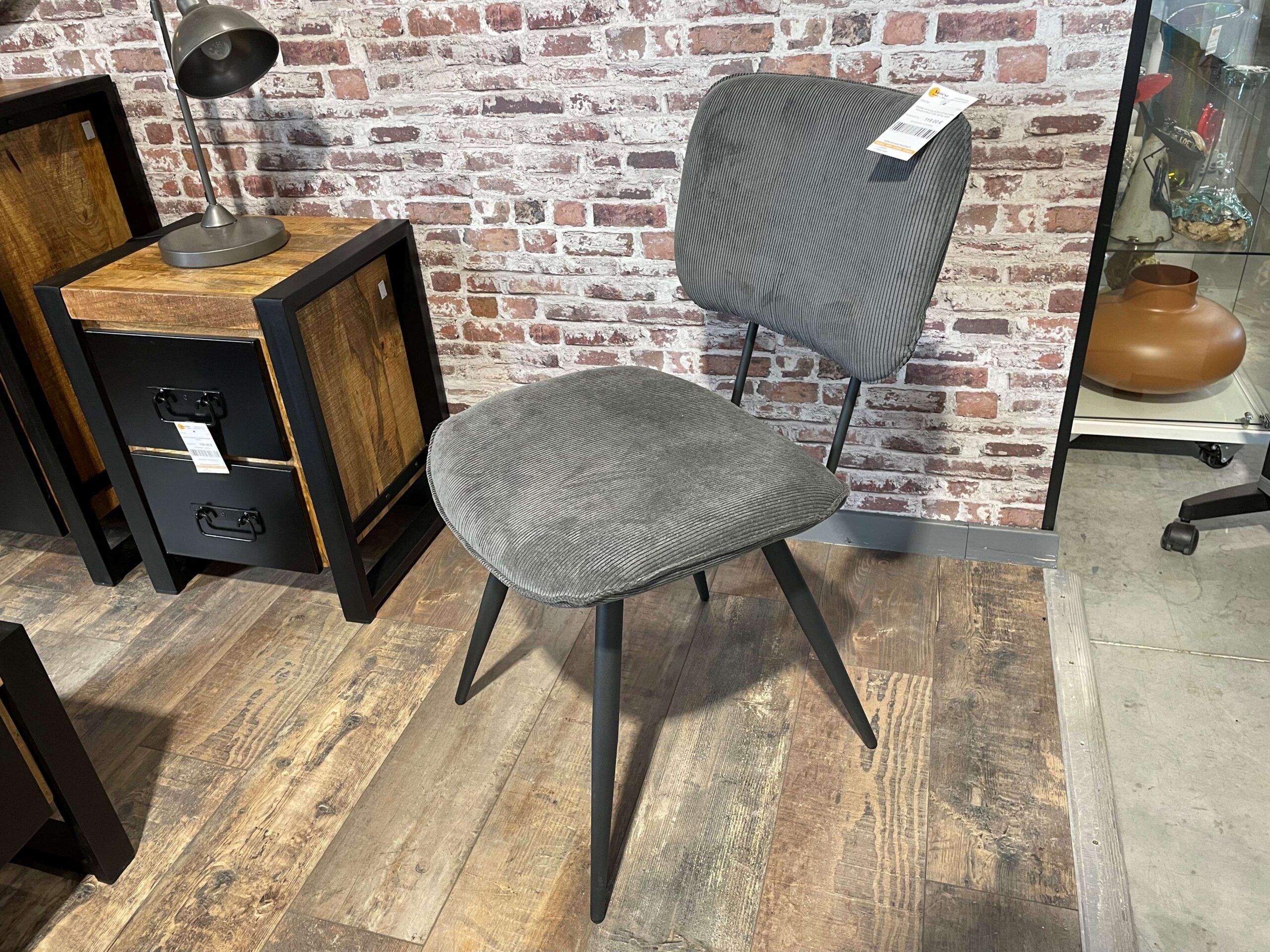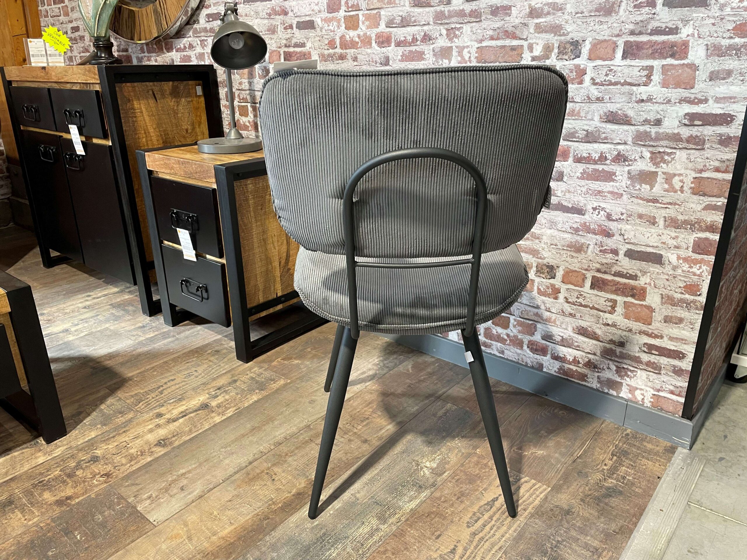 CHAISE VICK VELOURS CÔTELÉ GRIS FONCÉ STRUCTURE METAL NOIR
