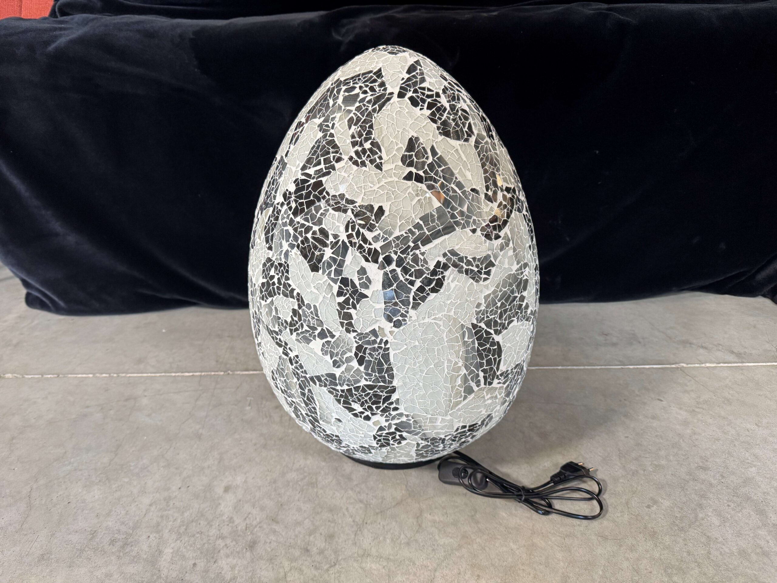 LAMPE OEUF MOSAIQUE NOIRE ET BLANCHE H.50CM