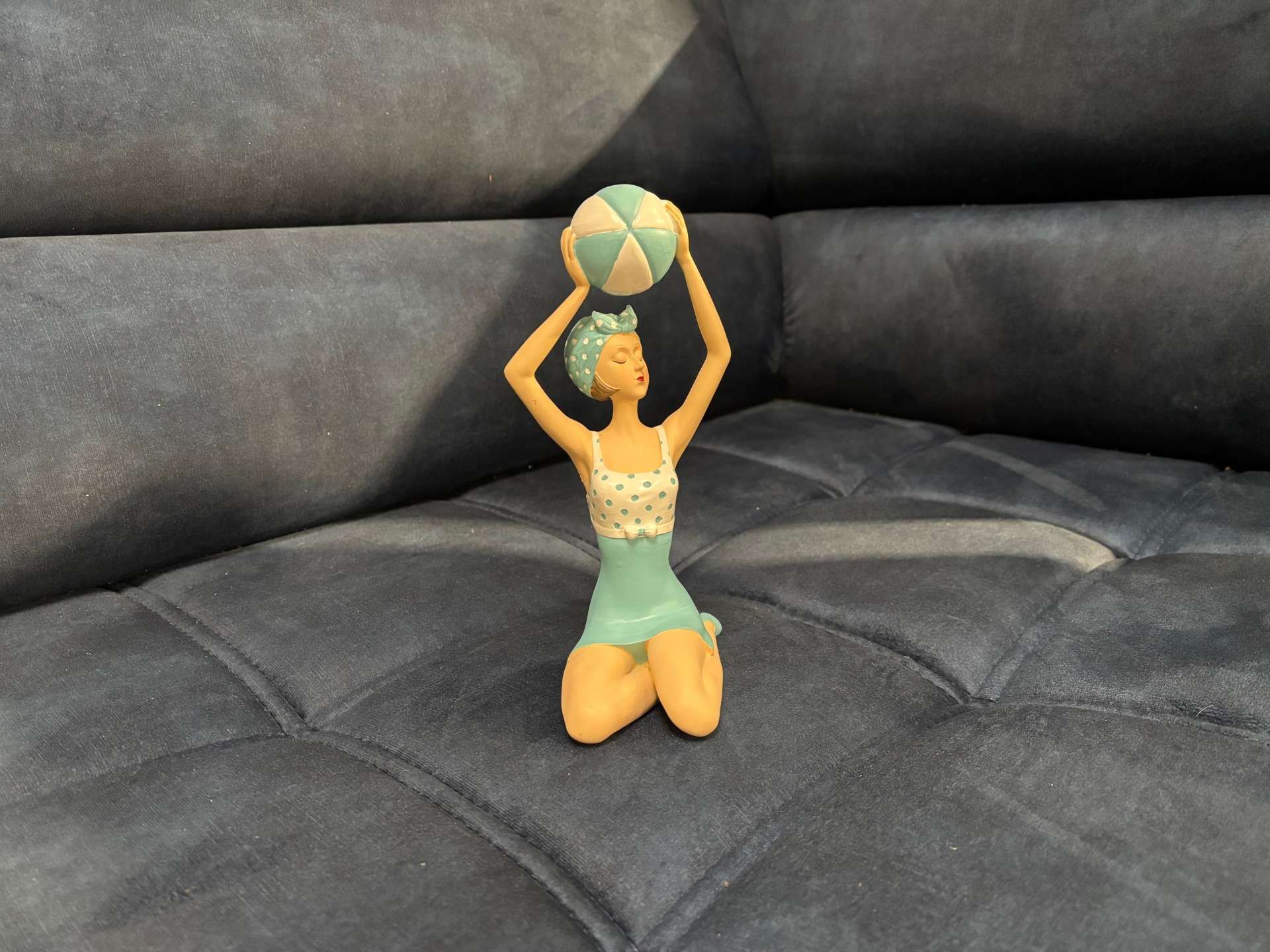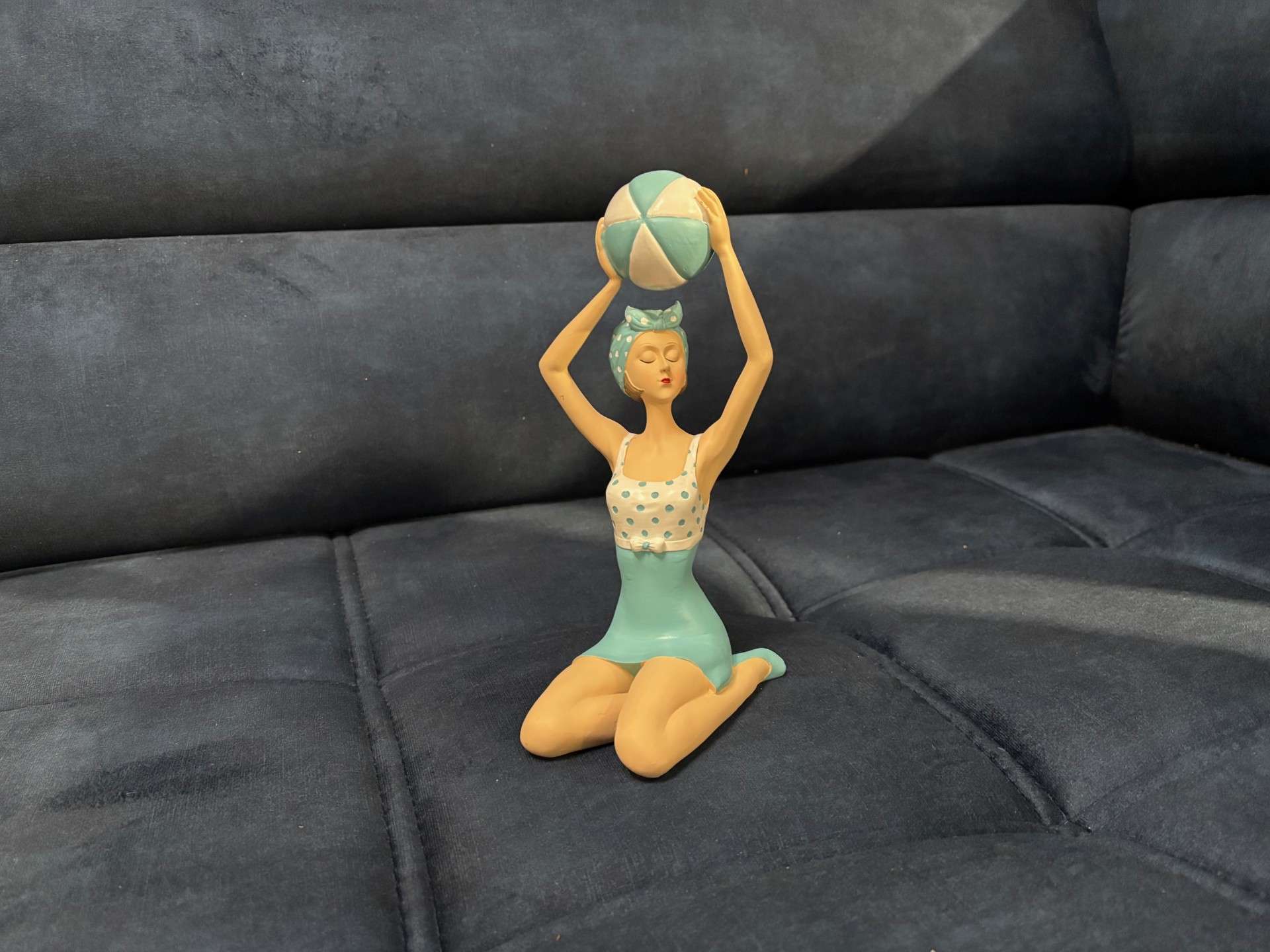 PIN UP A GENOUX AVEC BALLON COLORIS BLANC ET BLEU