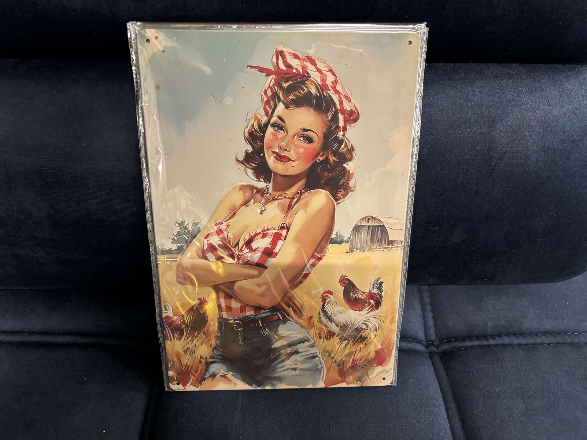 PLAQUE MÉTAL 20X30CM – FERMIÈRE POULES