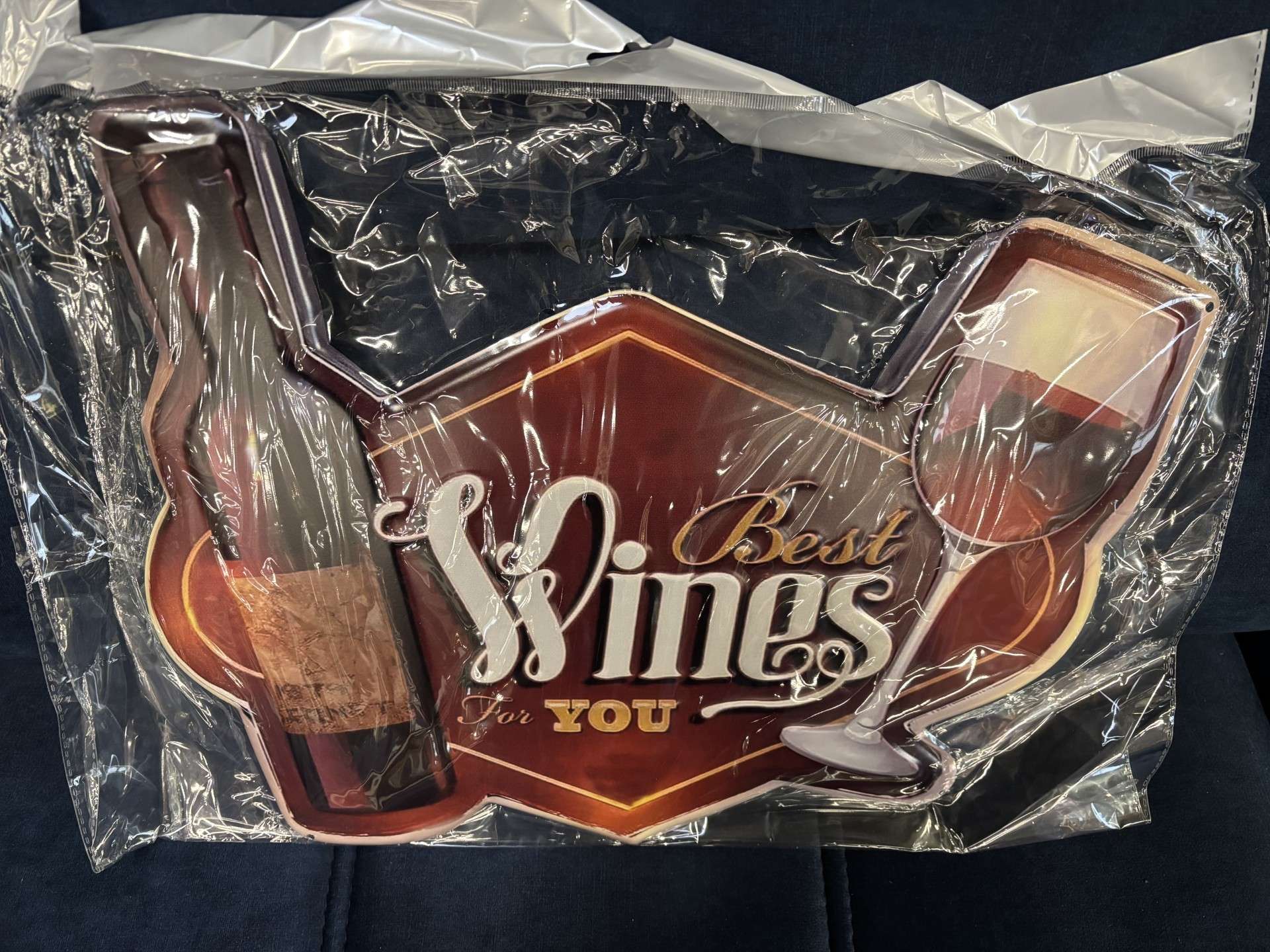 PLAQUE MÉTAL RELIEF BEST WINES L.43.5CM