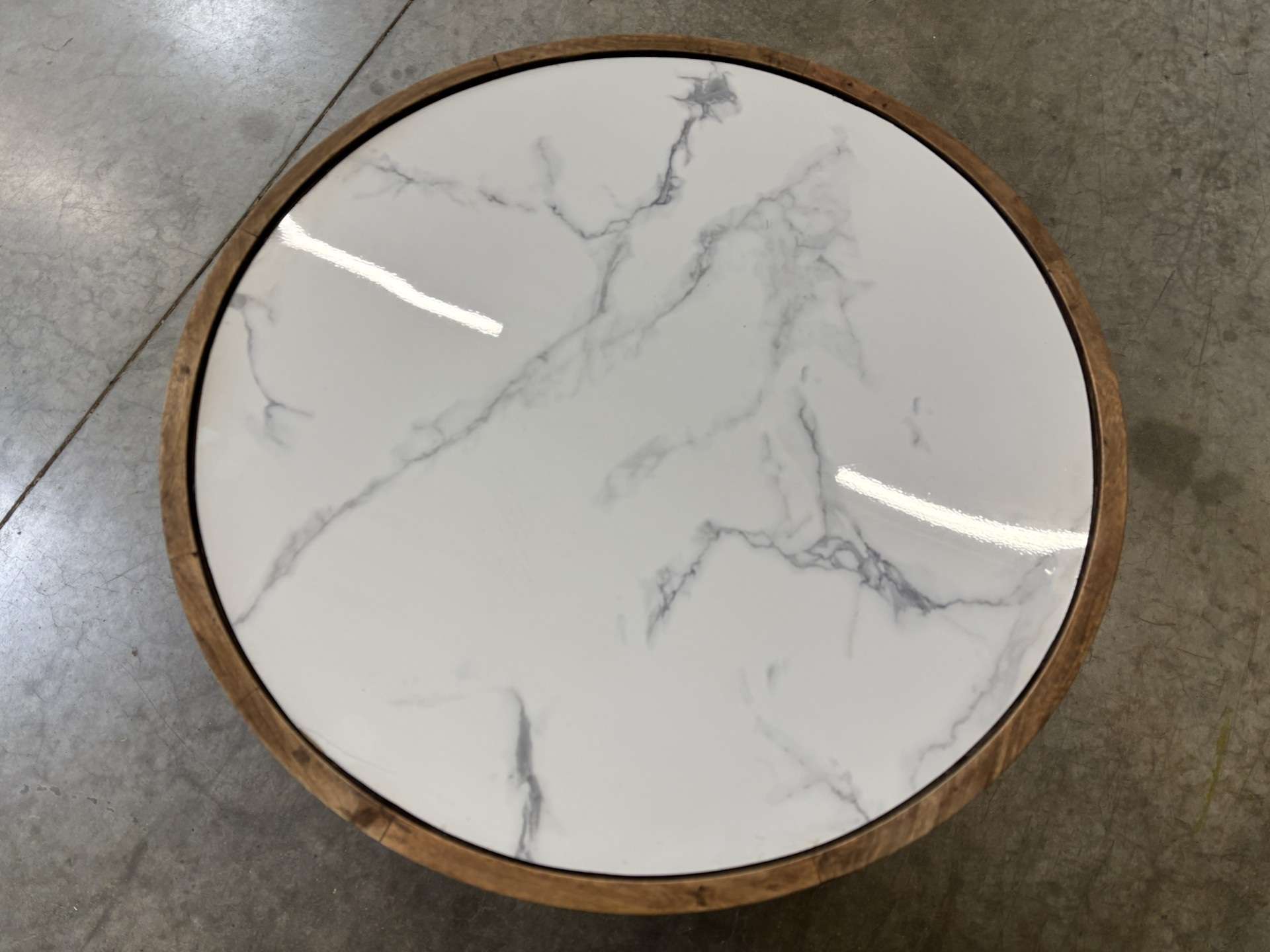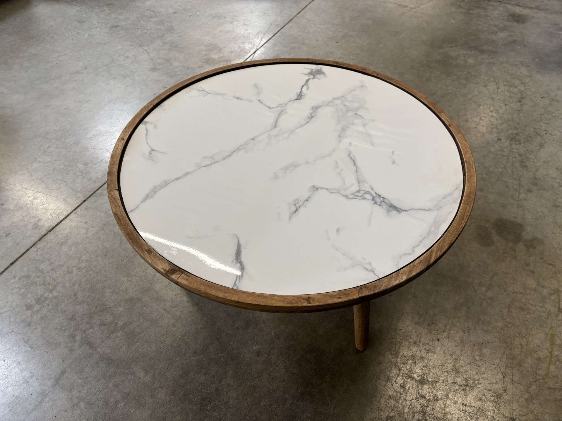 TABLE BASSE GM RONDE MANGUIER MASSIF – DESSUS VINYLE MARBRÉ